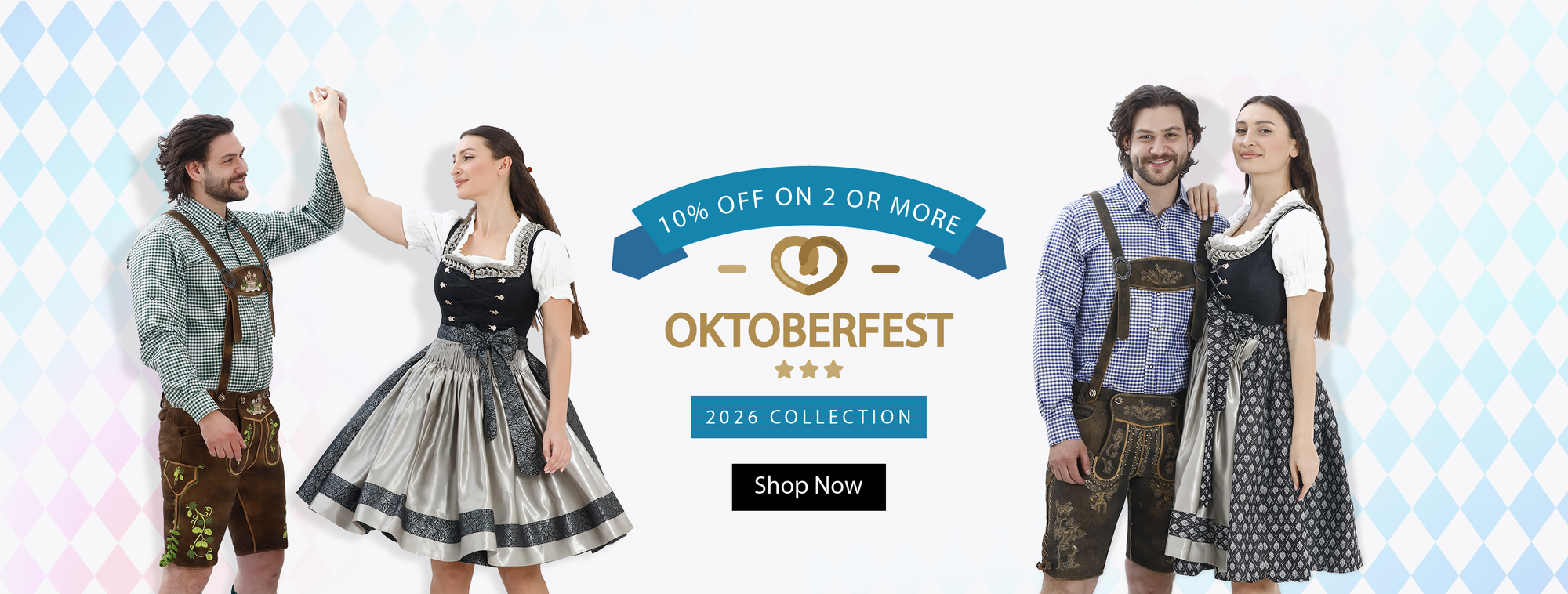 Buy lederhosen from our online store for yourself and your little ones, and choose from a range of Bavarian hats and checked shirts that make up the picture-perfect traditional men’s Oktoberfest outfit. Visit our latest collection and explore more about our big discounts and deals to make your Oktoberfest clothing affordable.