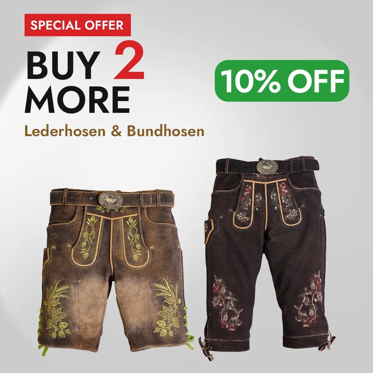 Welcome to the Lederhosen Store, your one-stop online destination for Oktoberfest clothing. We specialize in manufacturing men’s lederhosen and women’s dirndl in the latest Bavarian designs and color combinations. Our authentic lederhosen for men and women are made of genuine leather sourced from deerskin, goatskin, or cowhide, offering exceptional durability and ease of movement. Browse through our Oktoberfest collection of authentic Lederhosen colors, designs, and details, and order now to avail yourself of the exclusive Lederhosen Sale.